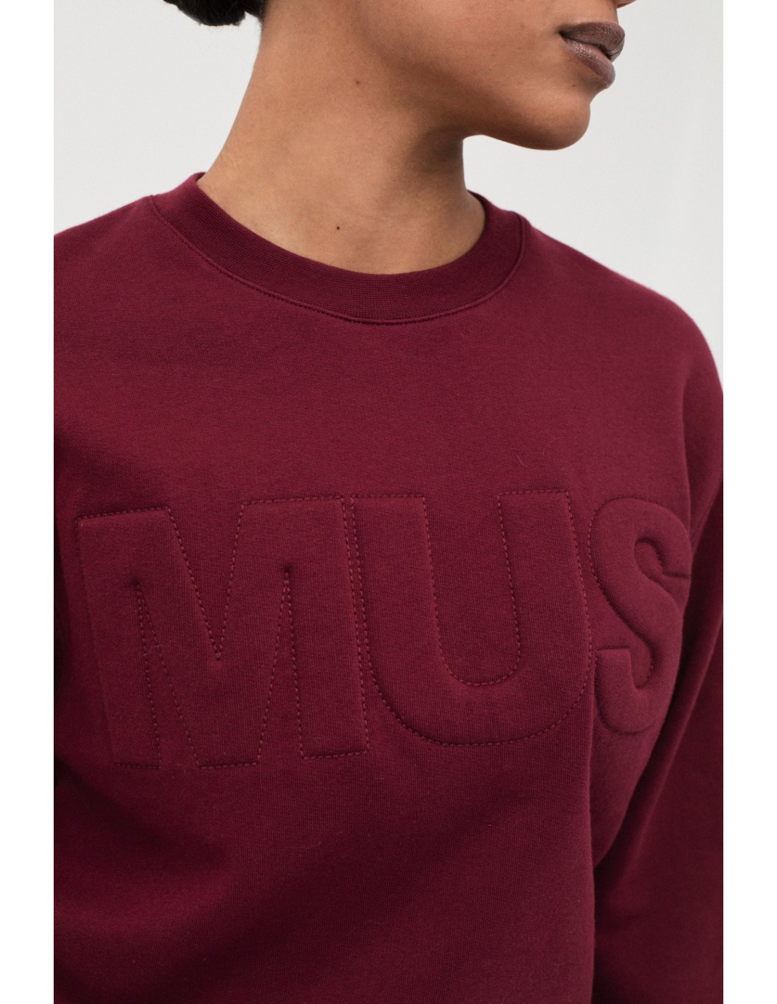 La sudadera Chamberi destaca por su estilo oversize y su print en relieve con detalle de un pespunte alrededor. Con cuello redondo y mangas abullonadas, es cómoda y moderna.
