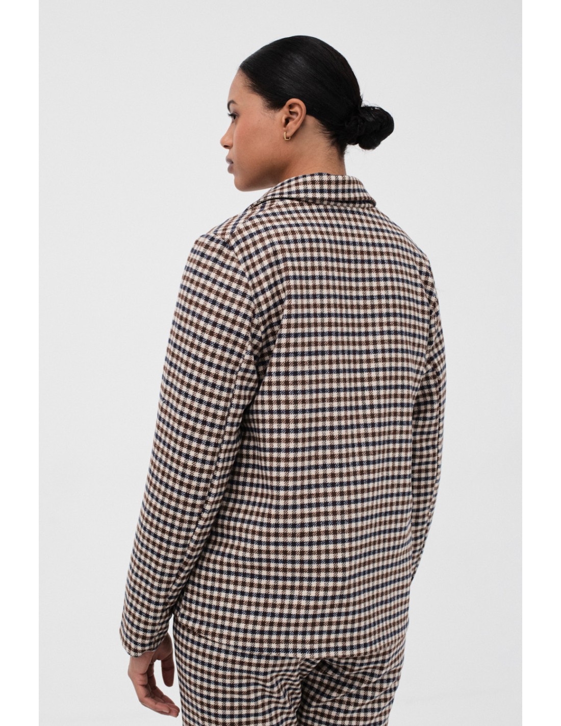 Esta americana de suave tejeduría de cuadros, le da un toque elegante y cómodo a tu look. Cuenta con bolsillos frontales y detalle de puño doblado hacia el exterior. Combina con el pantalón Blayais.