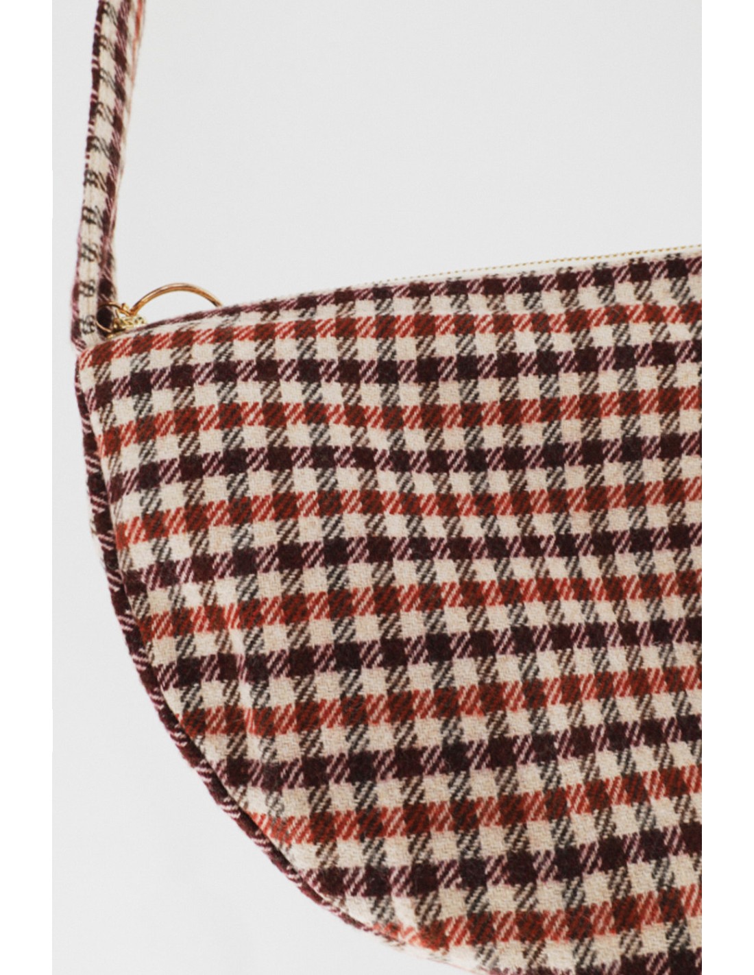 Bolso pequeño de tejido con asa regulable. Se cierra con cremallera metálica dorada, añadiendo un toque elegante y moderno. Combina con la chaqueta Libournais y los pantalones Blayais.