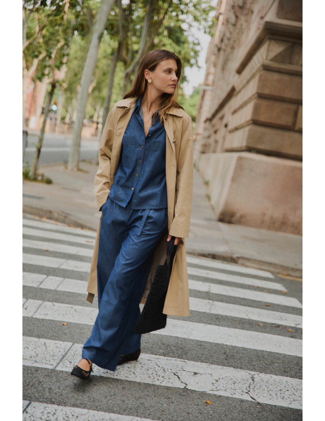 Camisa con cuello solapa y botonadura frontal, de manga larga con puños abiertos y botón en la parte posterior. Presenta dos bolsillos frontales y canesú en la espalda. Combínala con los pantalones o los shorts Banten para un total look sofisticado, ideal para los días de ciudad.