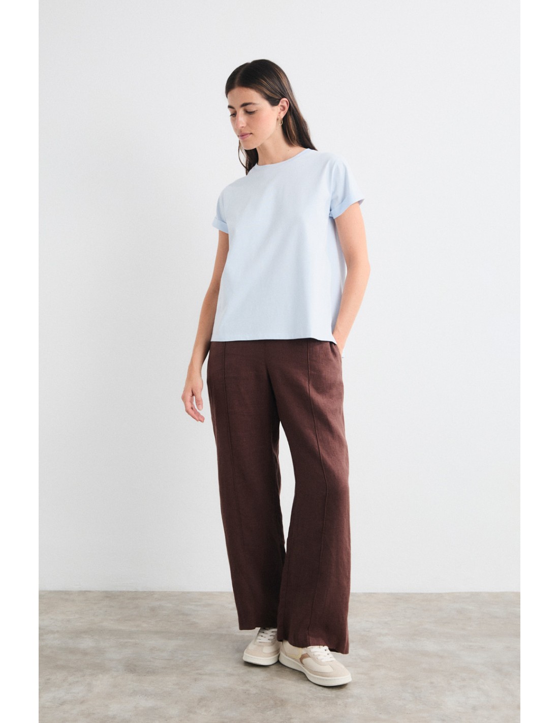 Musbom es una camiseta cuello caja con doble vuelta en manga y print bordado en la manga izquierda. El básico de armario de Mus&Bombon que no puede faltar.