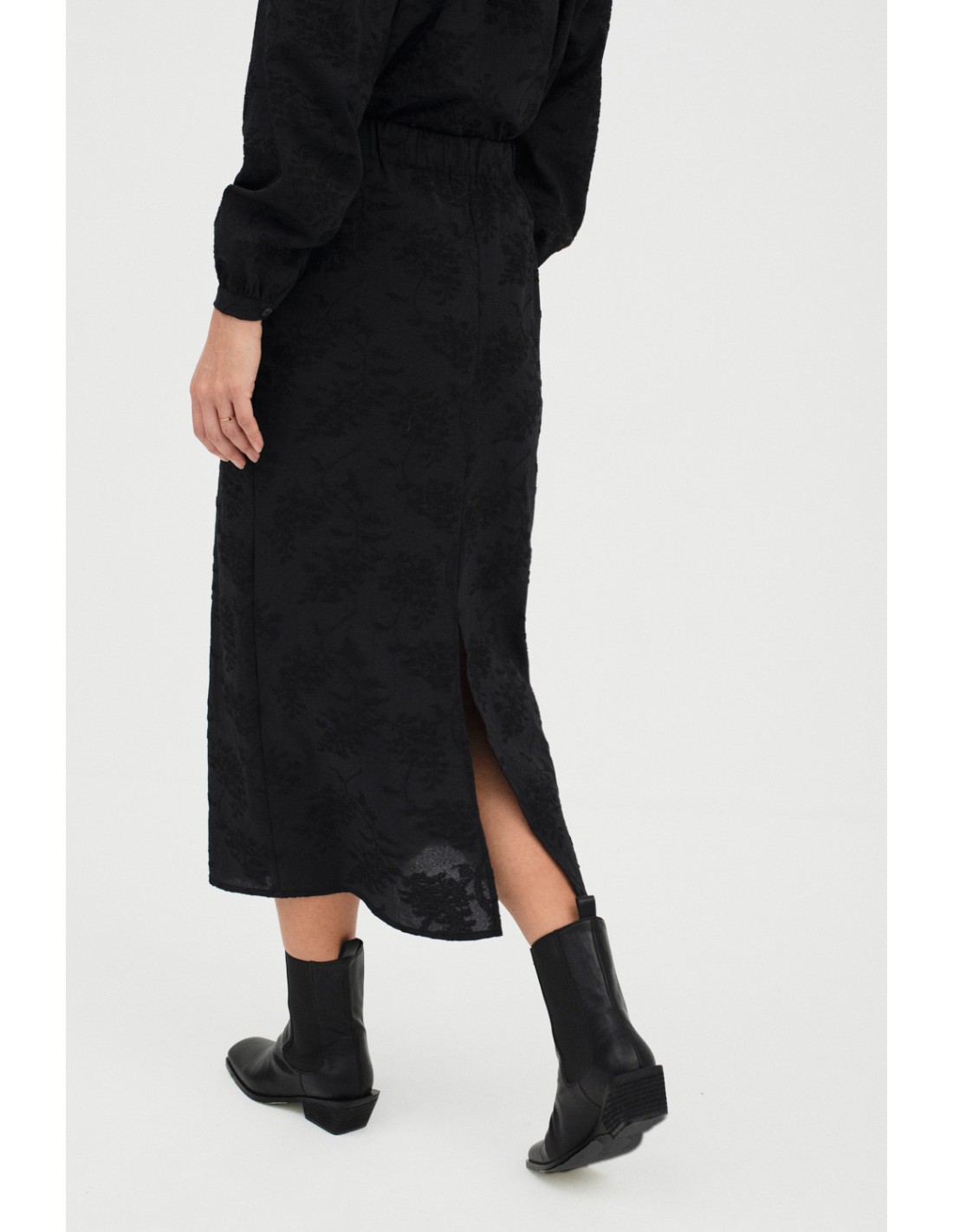 Saikun es una falda midi de jacquard con cierre mediante cremallera, goma plana en la espalda y forro interior. Combina con Sololaki para un total look.