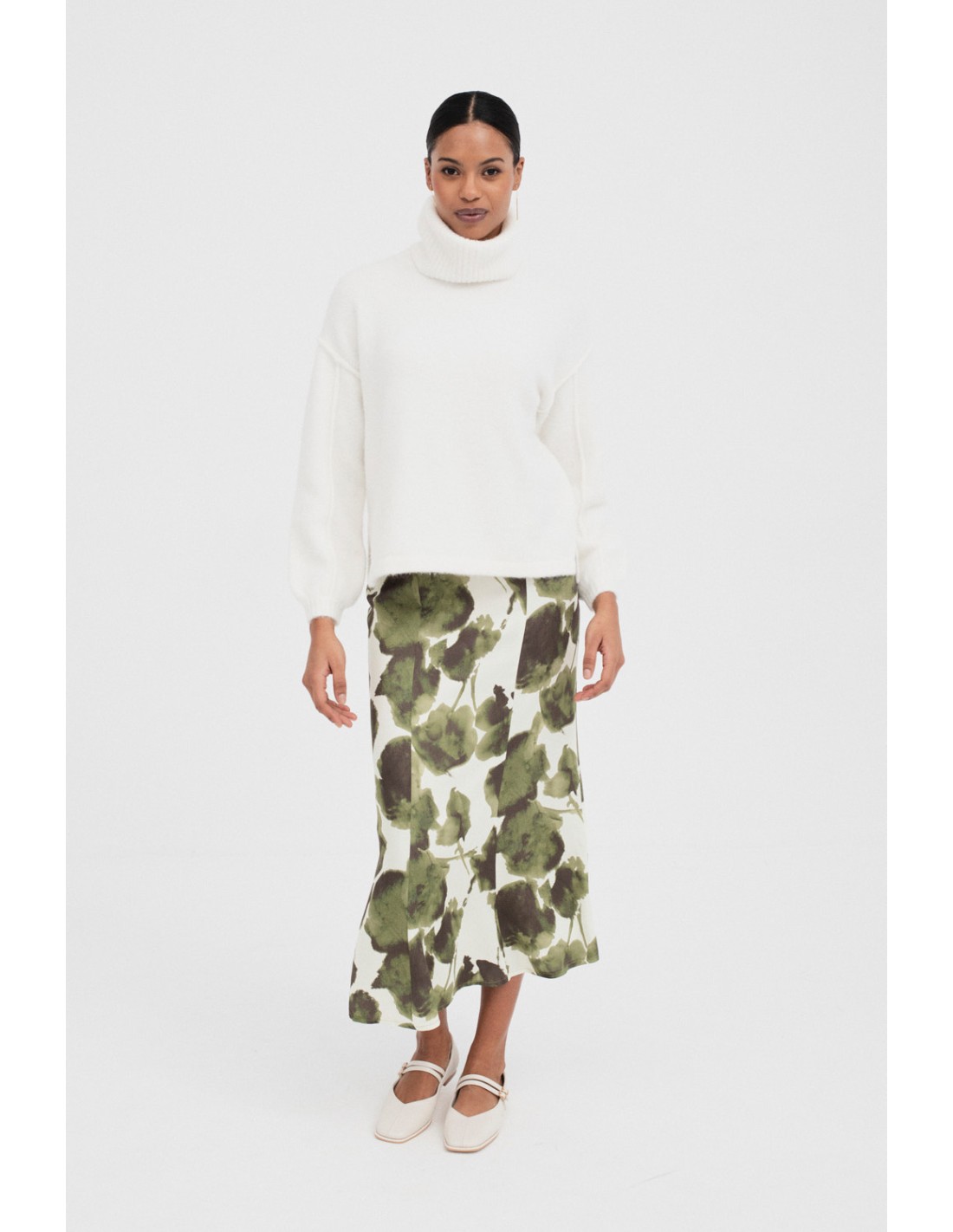 Falda midi con un diseño de godets que aportan movimiento y vuelo en el bajo. Cierre con cremallera invisible y goma plana en la espalda. Diseñada para combinar a la perfección con la blusa Panier.