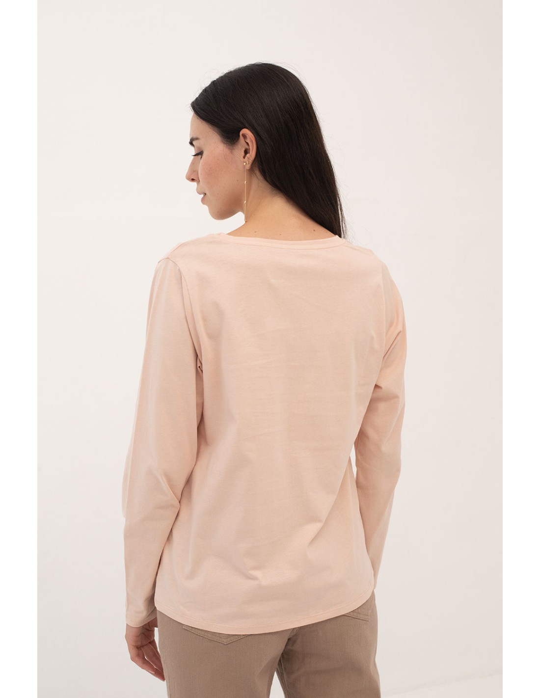 Un básico atemporal. Con manga larga, escote pico y detalle de doble carga en delantero y espalda.
