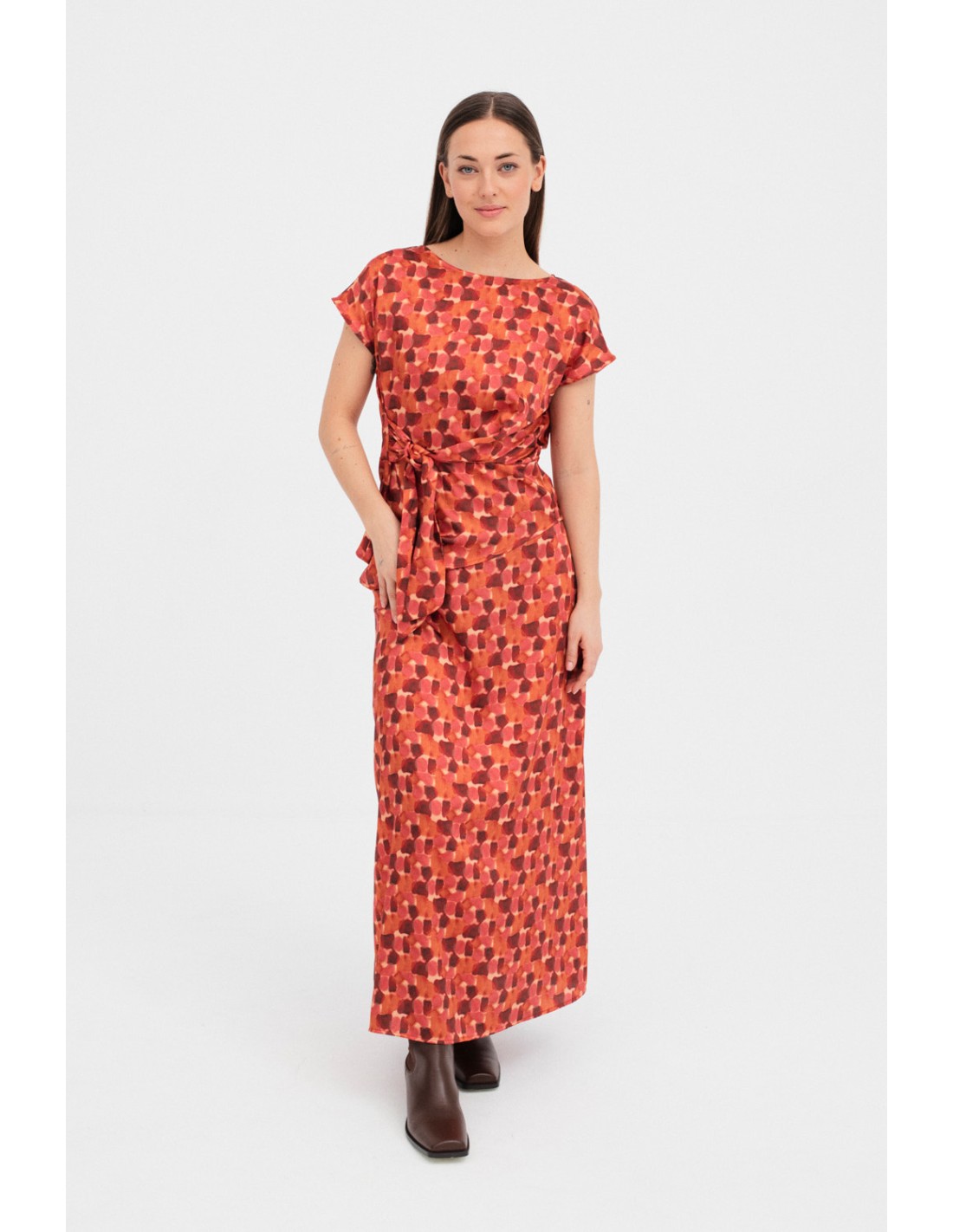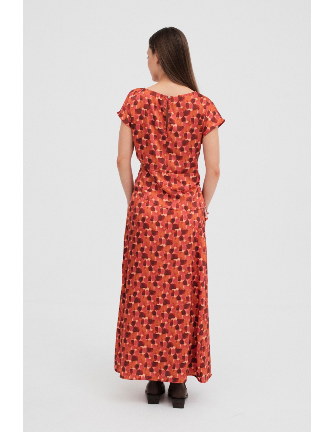 Jupe évasée avec une ceinture plate à l'avant, élastique à l'arrière et fermeture à fermeture éclair invisible. Associez-la au top Saude pour un look complet.