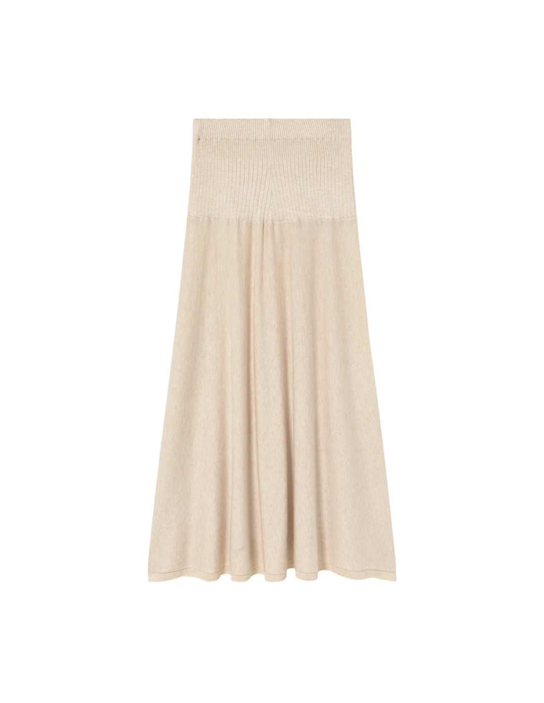 Jupe en maille avec élastique intérieur à la taille pour un ajustement confortable. Elle est composée de différents types de côtes au niveau des hanches, avec une finition fantaisie à l'ourlet. Se combine avec le top Seef pour un look complet.