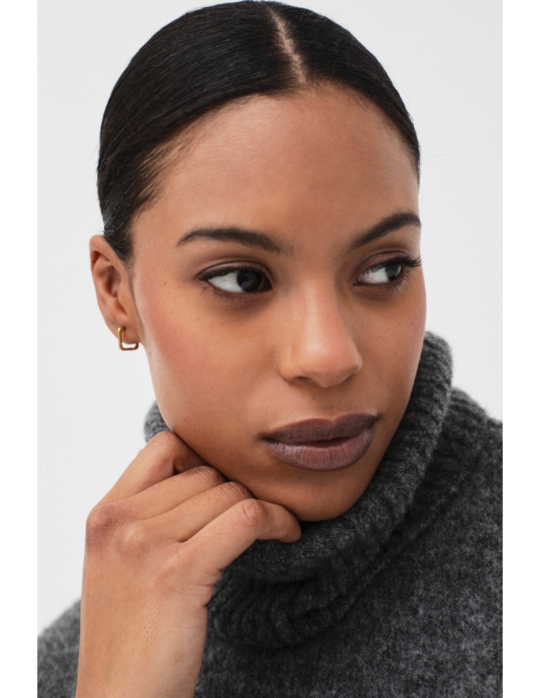 Pull à manches longues avec un col haut ajouté. Il présente un détail de coutures extérieures et des finitions en côtes, lui apportant un style moderne et élégant.