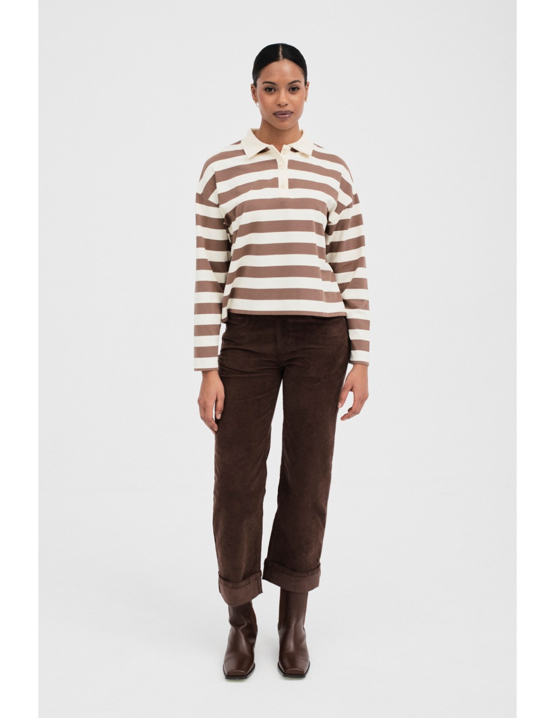 Pantalon en velours côtelé avec revers au bas, taille moyenne et coupe droite. Parfait pour être assorti à différents styles et occasions.