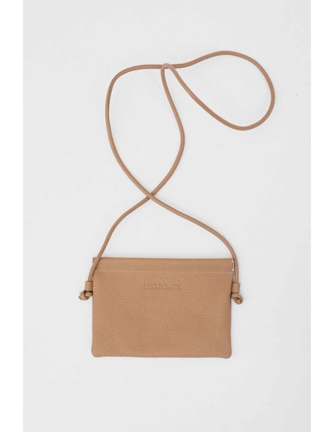 Mini sac en cuir avec une bandoulière réglable et une fermeture magnétique. Il est gravé du logo Mus&Bombon à l'extérieur. Le sac parfait pour emporter l'indispensable de votre quotidien.