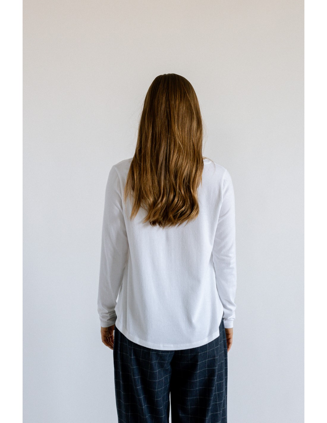 T-shirt basique à col bateau et manches longues, avec ourlet arrondi.