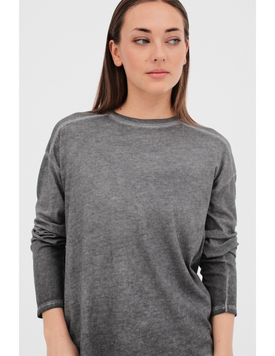 Meir est un t-shirt teinté avec des colorants végétaux et doté d’un col rond. Il présente des épaules avancées, des manches droites et une coupe décontractée, parfait pour un look confortable et casual.