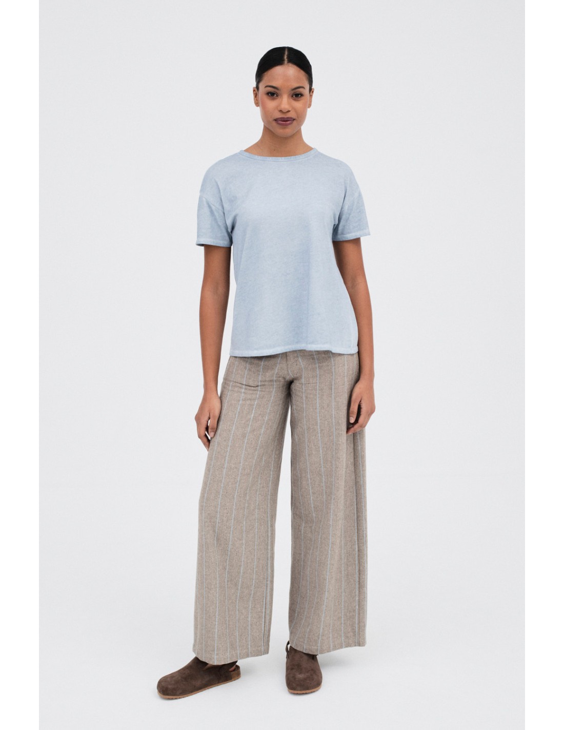 Prenz est un t-shirt à manches courtes au design droit et teinté avec des colorants végétaux. Il dispose d'un col rond et est confortable, parfait pour un look décontracté.