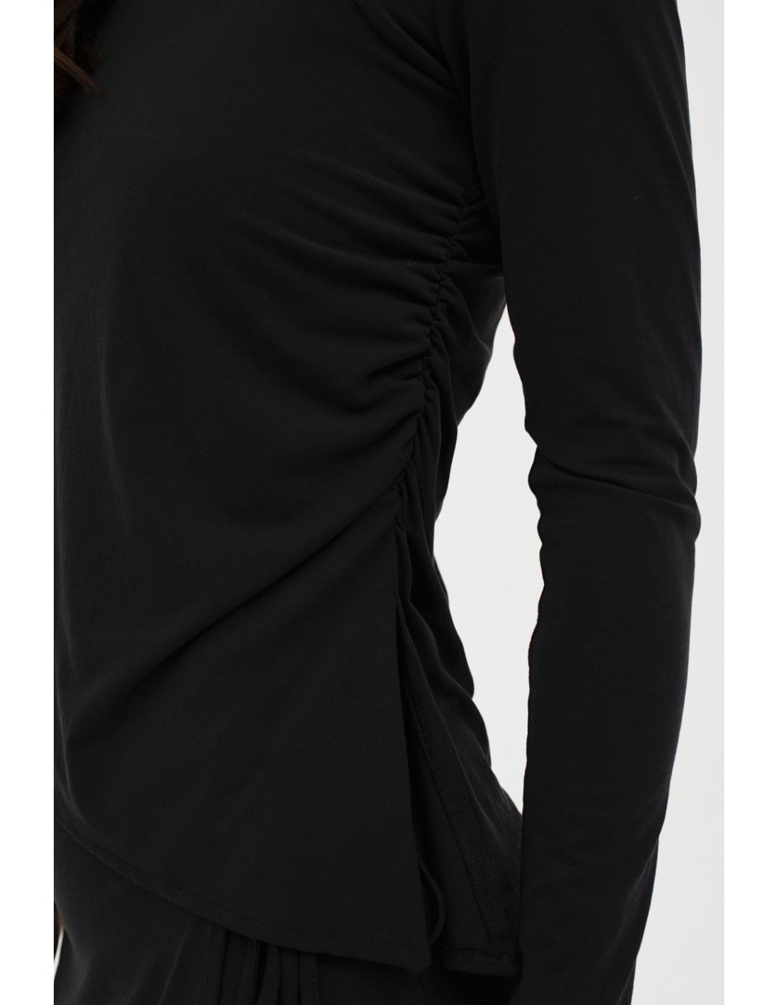 Staten est un t-shirt à manches longues avec un effet cupro. Il présente un décolleté asymétrique, une ouverture latérale et un délicat froncé. Associez-le à la jupe Spital pour un look moderne et élégant.