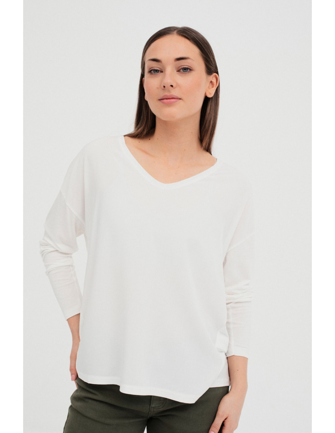 Ce t-shirt bimatière combine style et texture avec son design à manches longues et son décolleté en V. Confectionné dans un tissu doux, il est confortable et parfait pour un look décontracté.