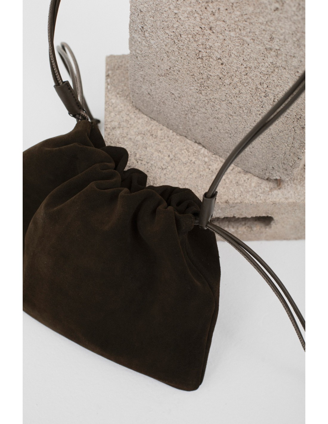 Cross body bag with adjustable handle and drawstring closure. On the inside it has a pocket with leather trim and another zipped pocket. Mus&Bombon logo engraved on the outside.