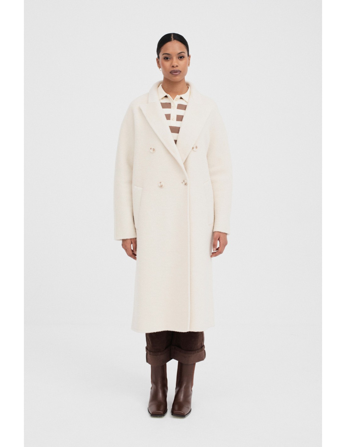 Louvre is a long coat with lapel collar. Designed with Japanese sleeves. It has double-breasted buttons and pockets. An elegant classic that adds style and sophistication to your look.