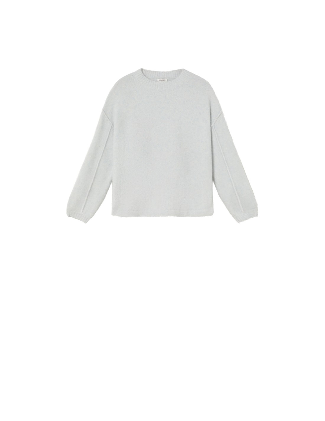 Long sleeved jumper that comes with a high neck complement. It is detailed with external stitching and ribbed trims, which gives it a modern and elegant style.