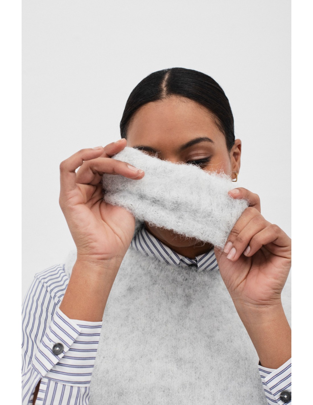 Fuzzy knit vest with a separated collar, an elegant and comfortable piece that adds a unique touch to your looks.