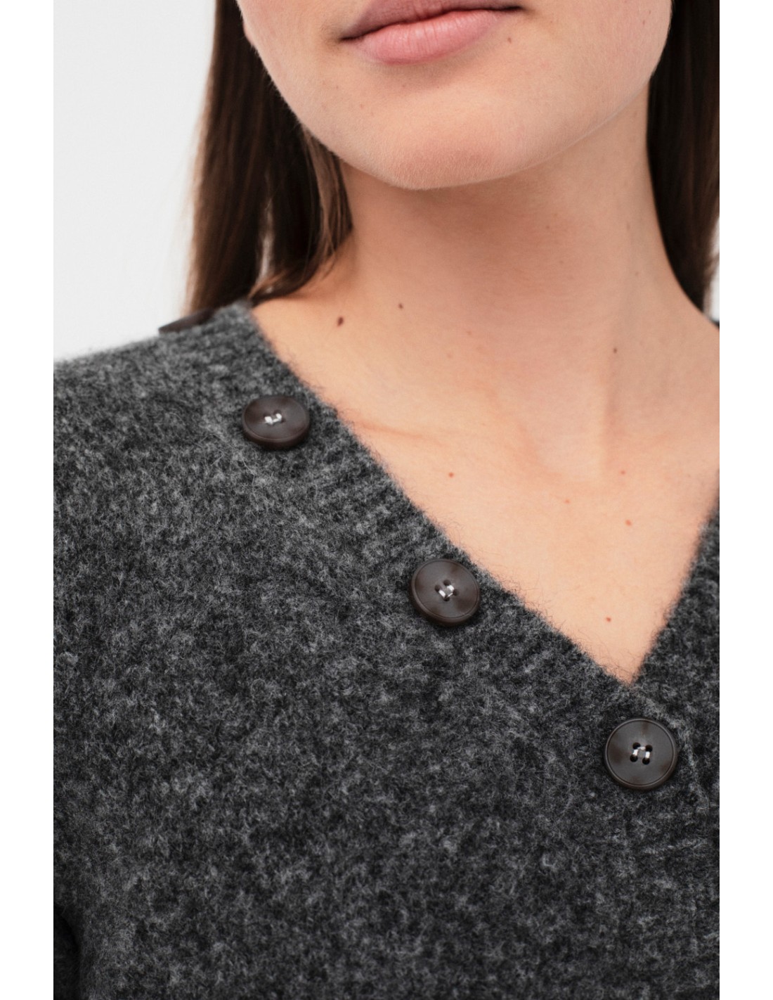 V-neck jumper with a false opening with buttons and ribbed cuffs, giving it a unique and versatile twist.