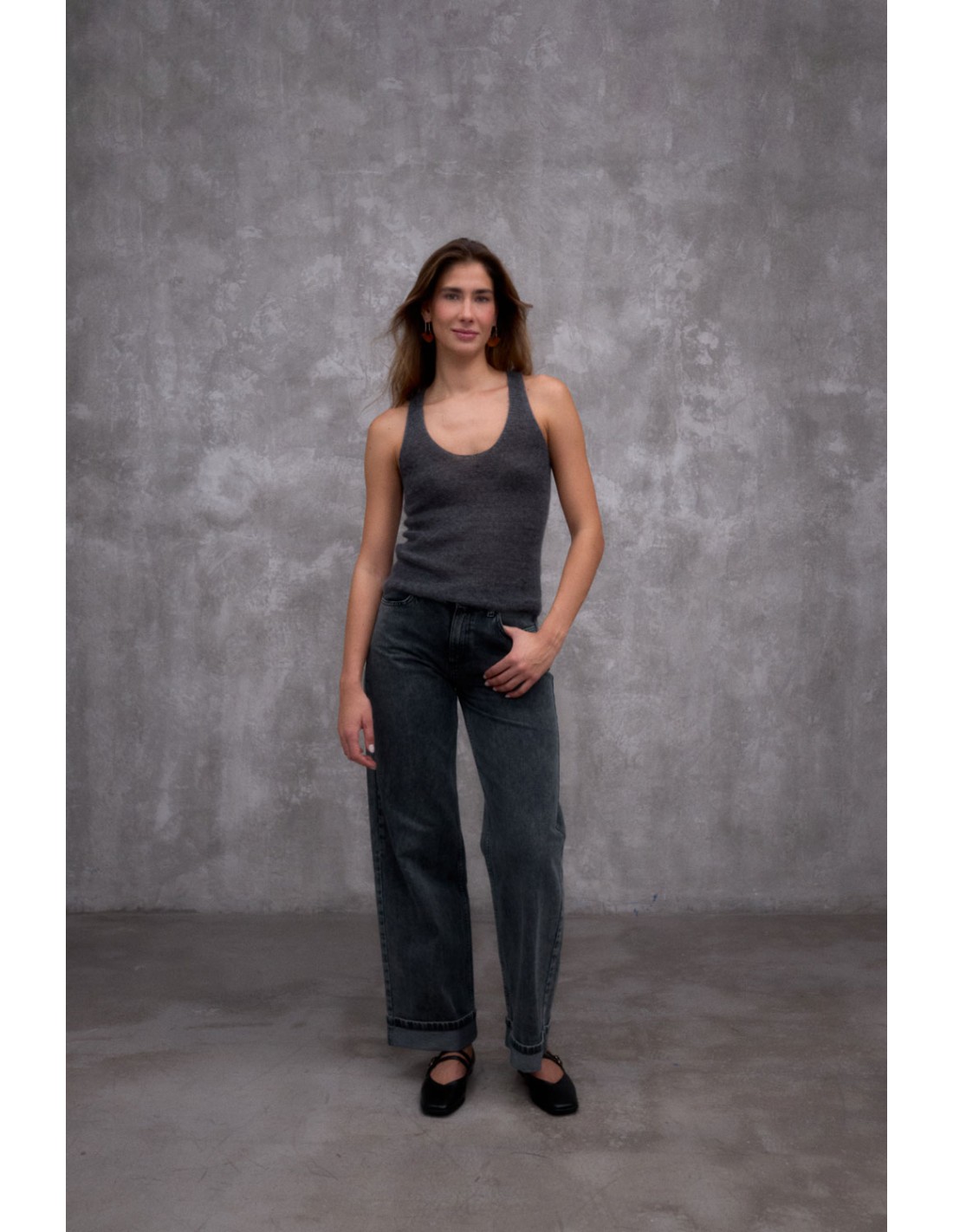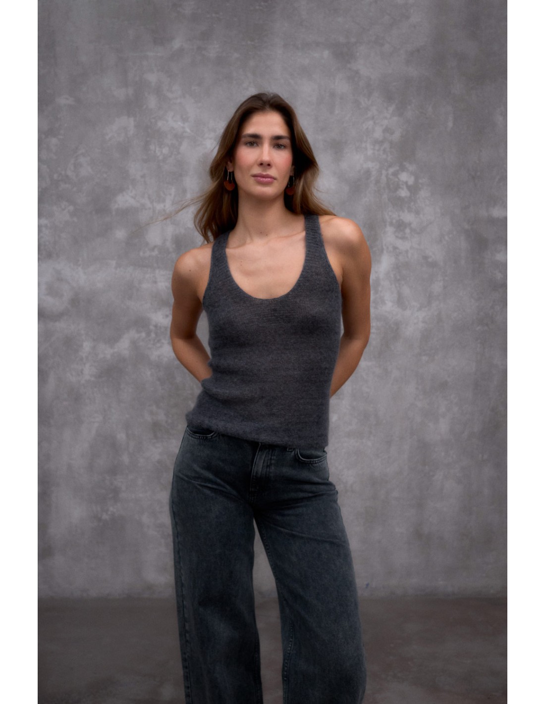 Metallic knit top with ribbed round neckline. A versatile garment with a refined finish that elevates any outfit. Pair with the Stone jumper or Trine cape for an elegant look.