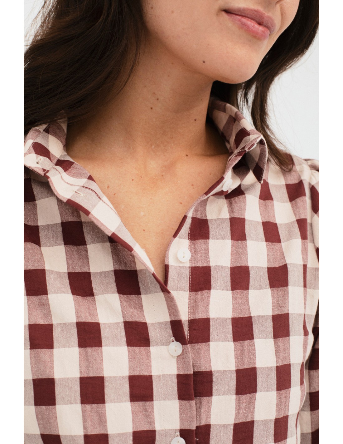 Vichy blouse with shirt collar, buttons on the front and puffed sleeves with elastic cuffs. Combine it with the Marylebone skirt or the Malasaña trousers for a complete look.
