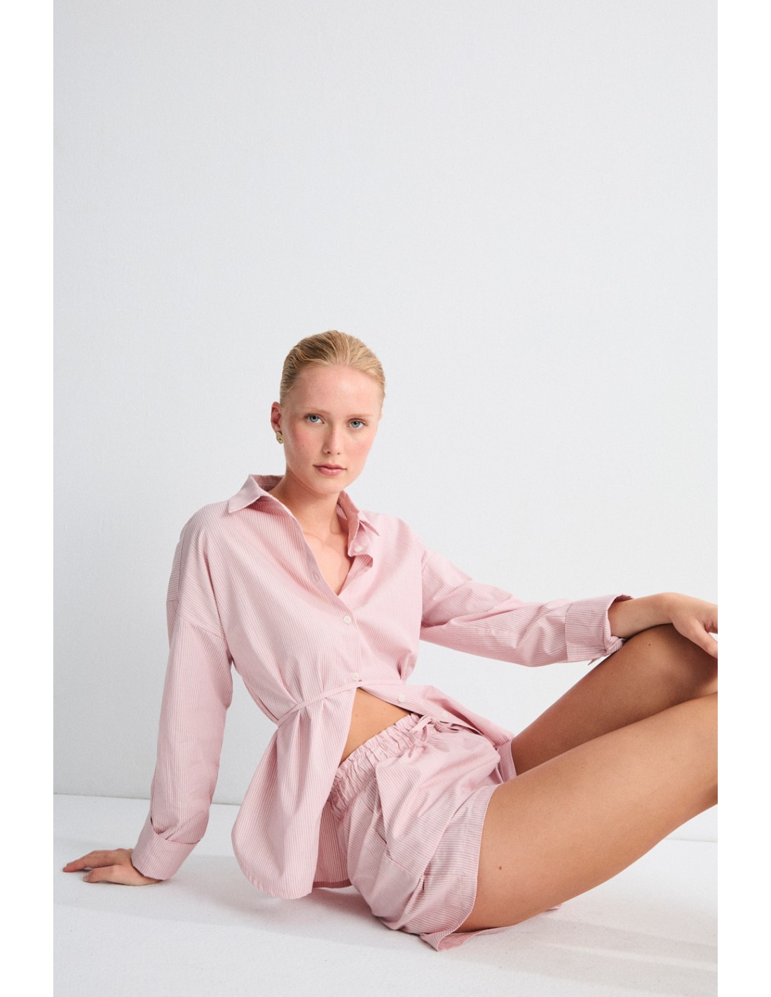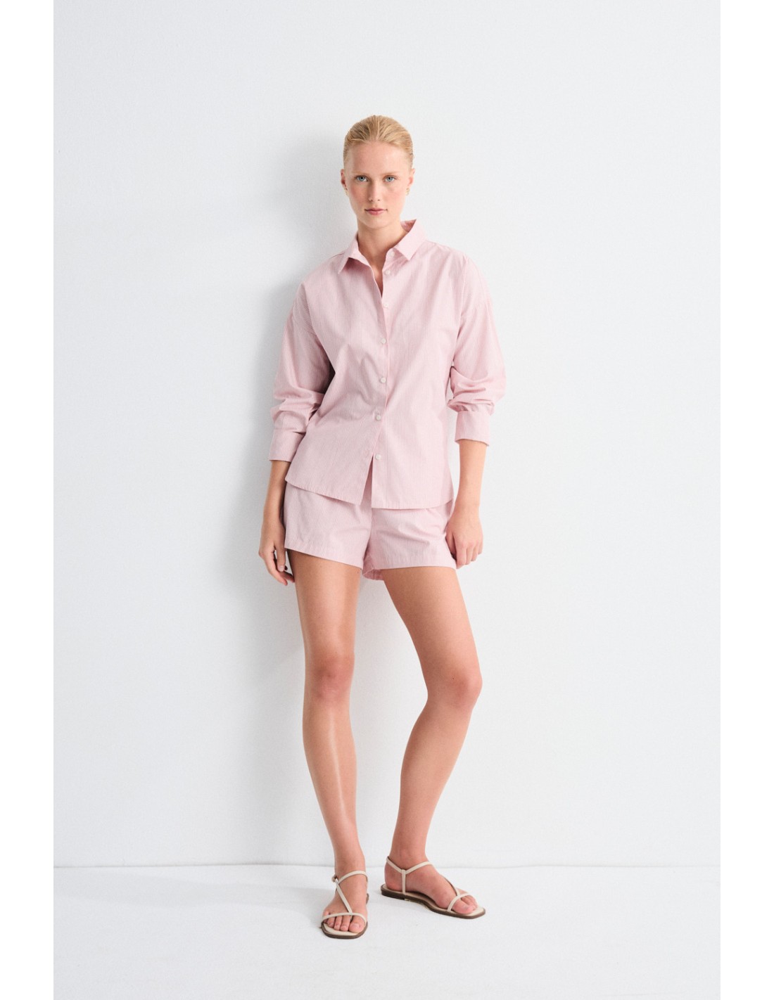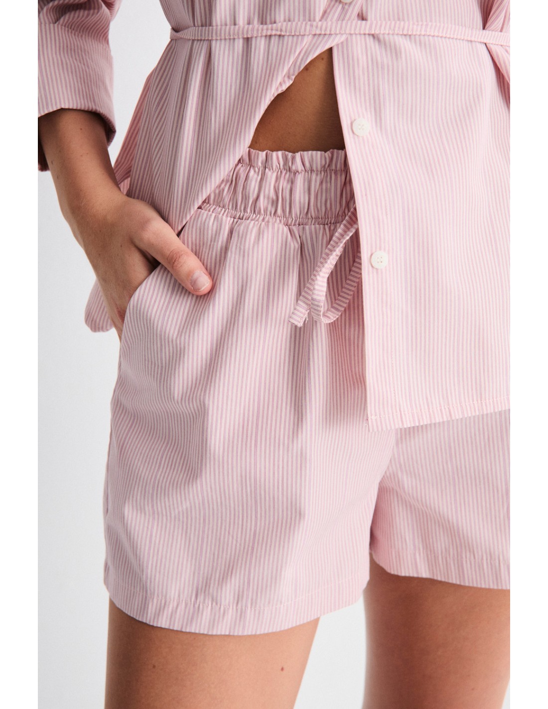 Short trousers with elastic waistband and adjustable drawstring in the same fabric. Stitching detail on the waistband. Combine with the Icaro shirt for a total look with a modern touch.
