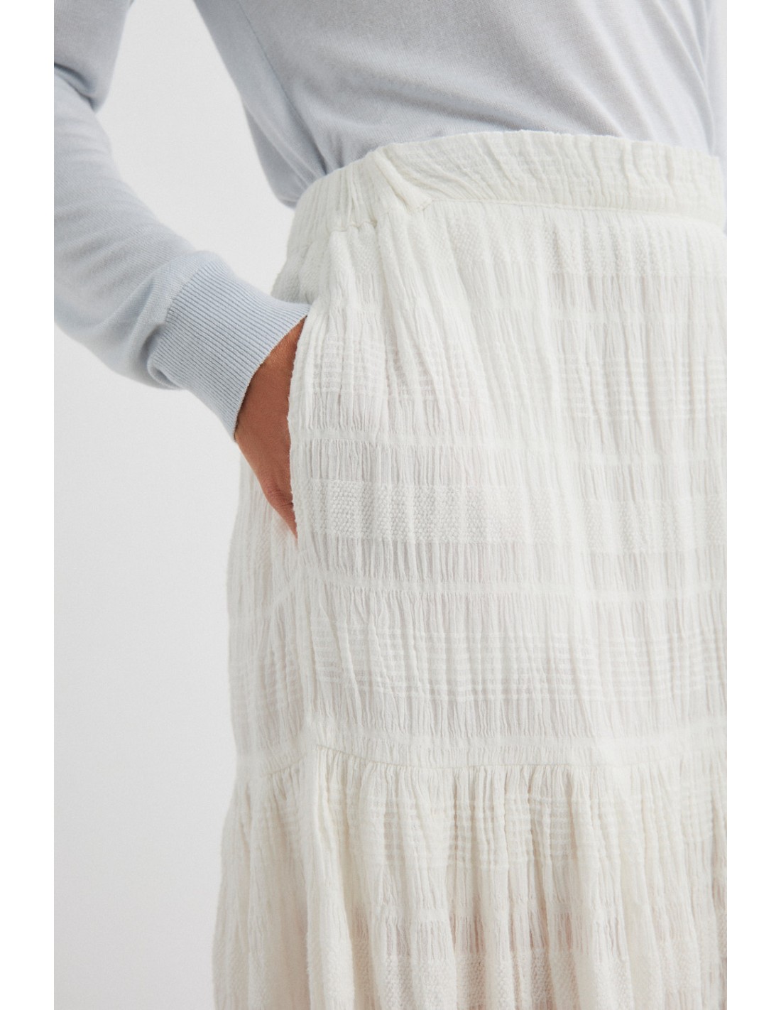 Double ruffle skirt with elasticated waist and side pockets. Combine it with the Bruma shirt for a harmonious total look. Also available the Bruma dress in the same fabric.