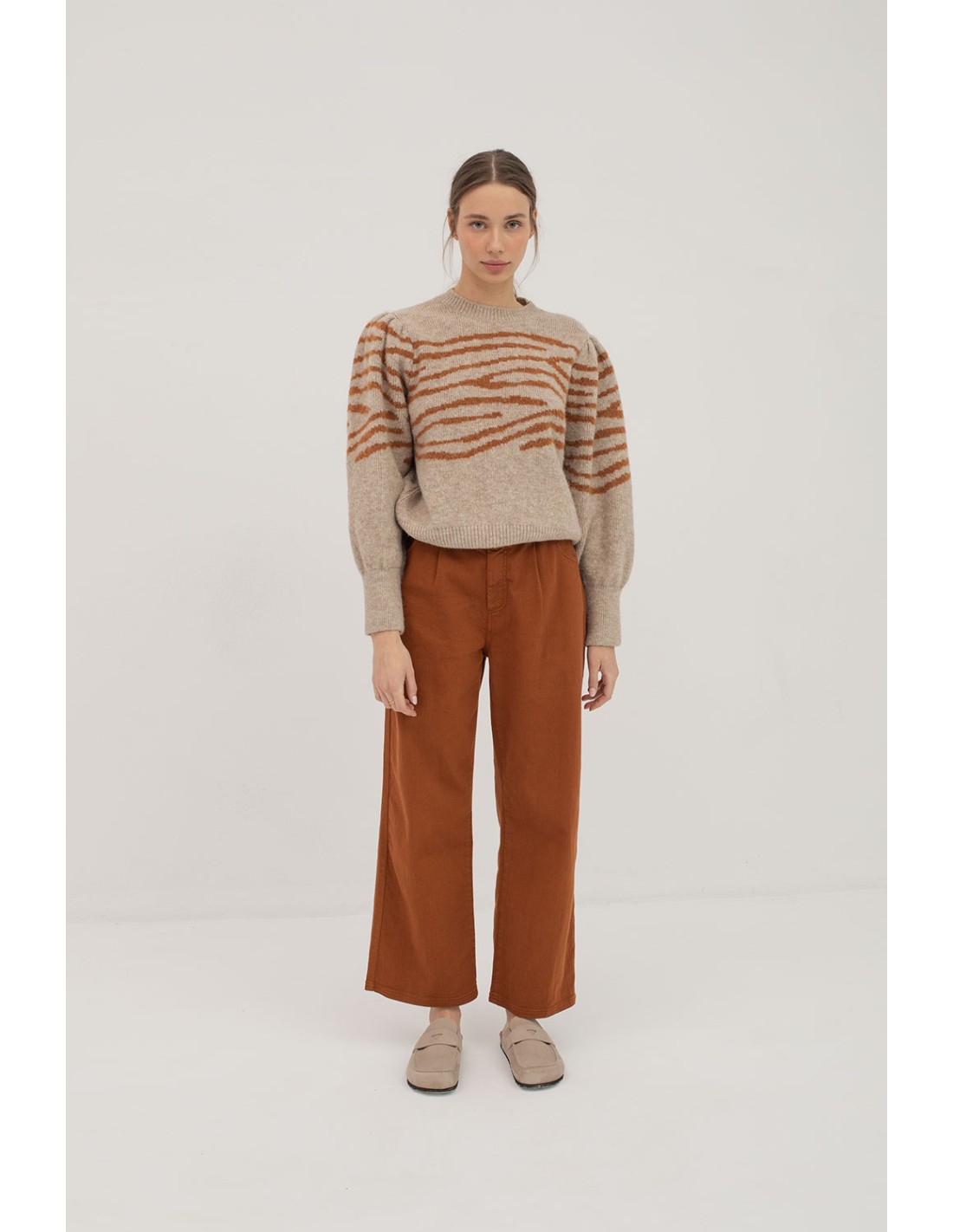 Costa jumper with ribbed round neck and long puffed sleeves with ribbed cuffs, offering a modern and comfortable style to stand out this season.