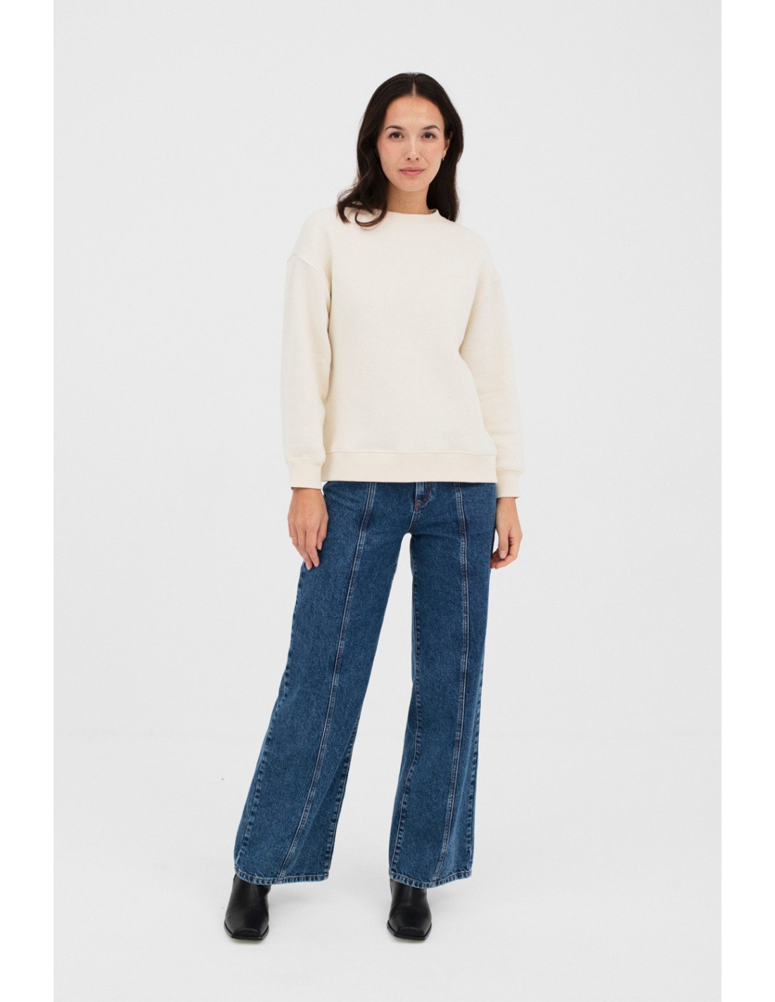 Wide-cut, high-waisted denim trousers with centre seams for a sleek, modern fit.