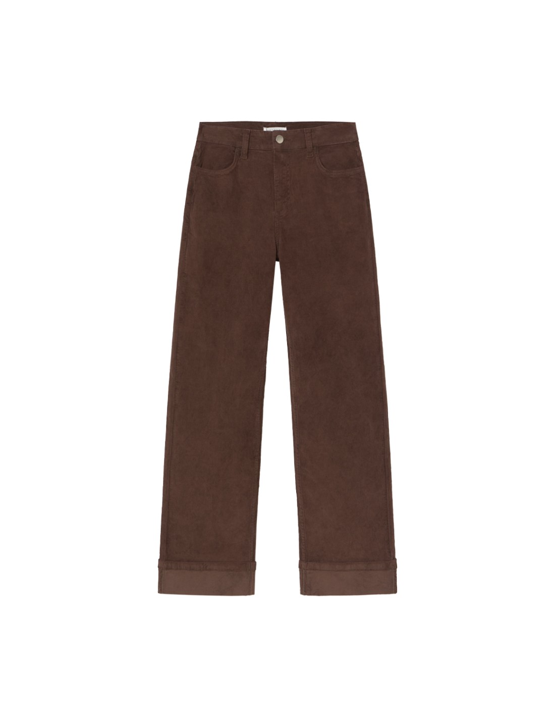 Corduroy trousers with a hem detail folded to the outside., medium rise and straight cut. Perfect to wear it with different styles and occasions.