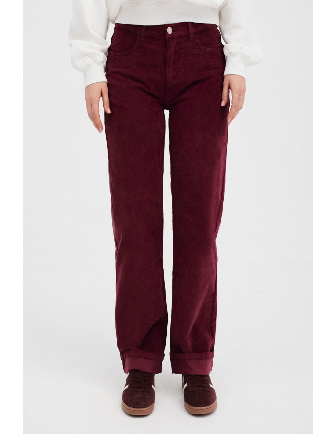 Corduroy trousers with a hem detail folded to the outside., medium rise and straight cut. Perfect to wear it with different styles and occasions.