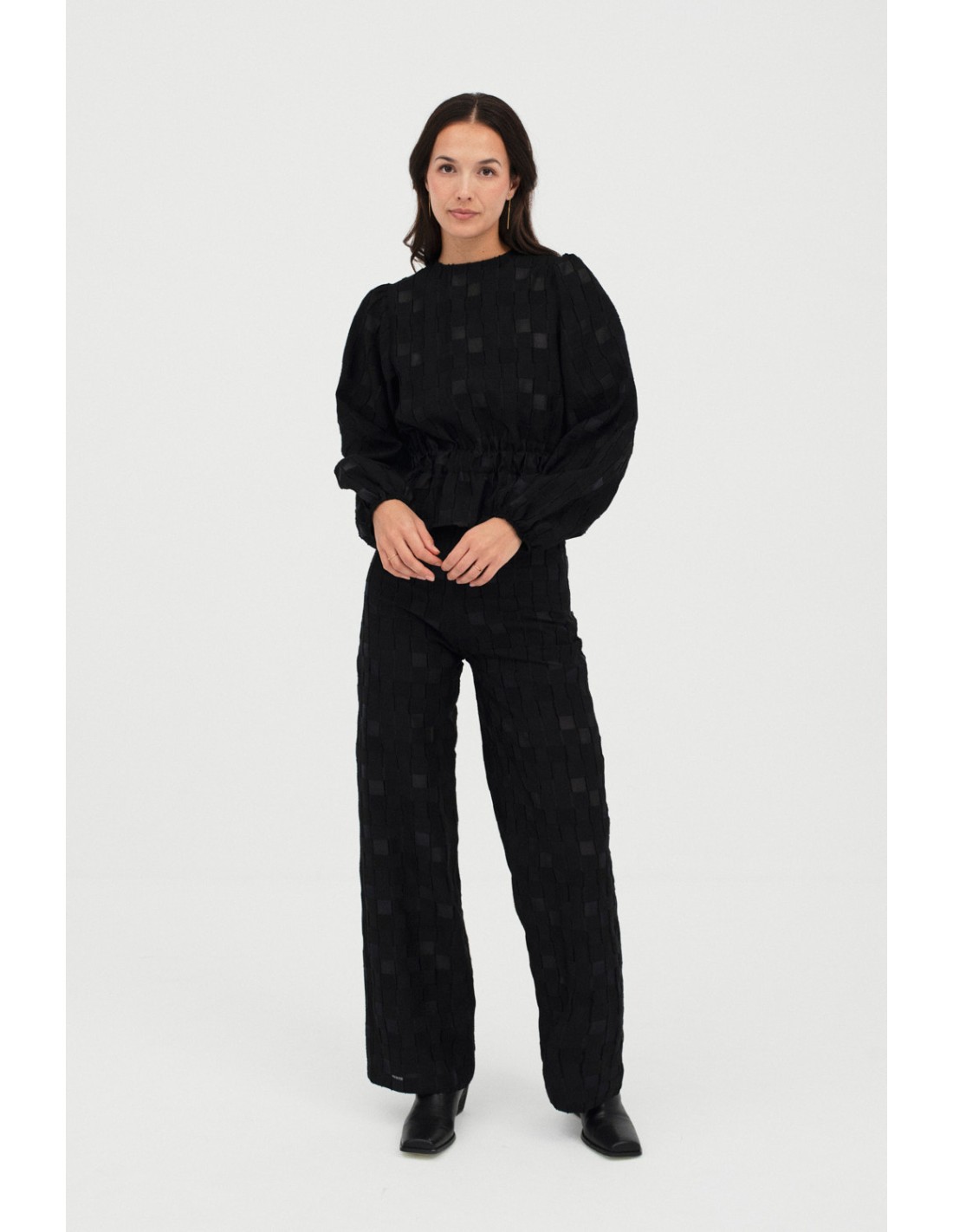 A checked jacquard trouser that stands out for its elegant design. It features an invisible zip, flat elasticated waistband at the back and is lined for comfort. Pair with Manhattan blouse for a total look.