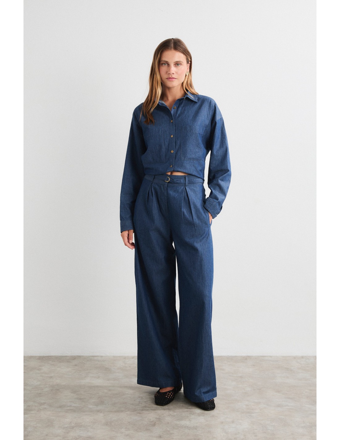 High rise trousers with elasticated waistband. They have two piped front pockets and two patch pockets at the back. Wide leg with two darts on the front. Pair with the Banten shirt for a sophisticated total look. Discover also the Banten shorts.